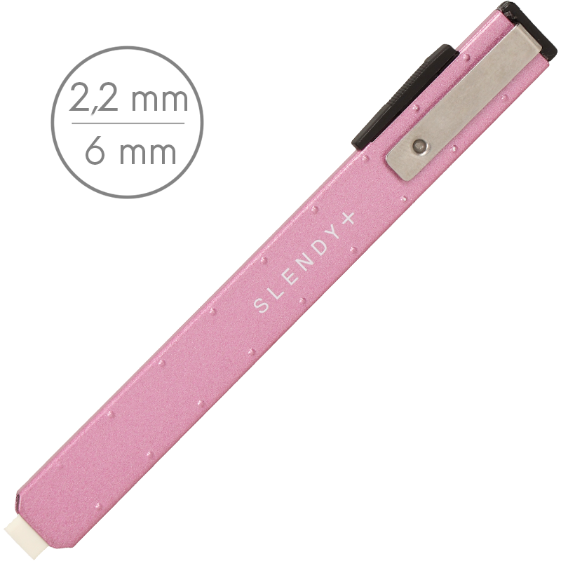 Wygodna w obsłudze gumka automatyczna z wymiennym wkładem i cienką, prostokątną końcówką o wymiarach 2,2 x 6 mm. Idealna do precyzyjnego i dokładnego ścierania, korygowania detali. Wkłady posiadają ząbkowane boki, dzięki czemu nie przesuwają się w obudowie. Smukła, metalowa obudowa dostępna w kilku kolorach. Lekka i wytrzymała. Gumka zarówno dla profesjonalistów, jak i hobbystów.