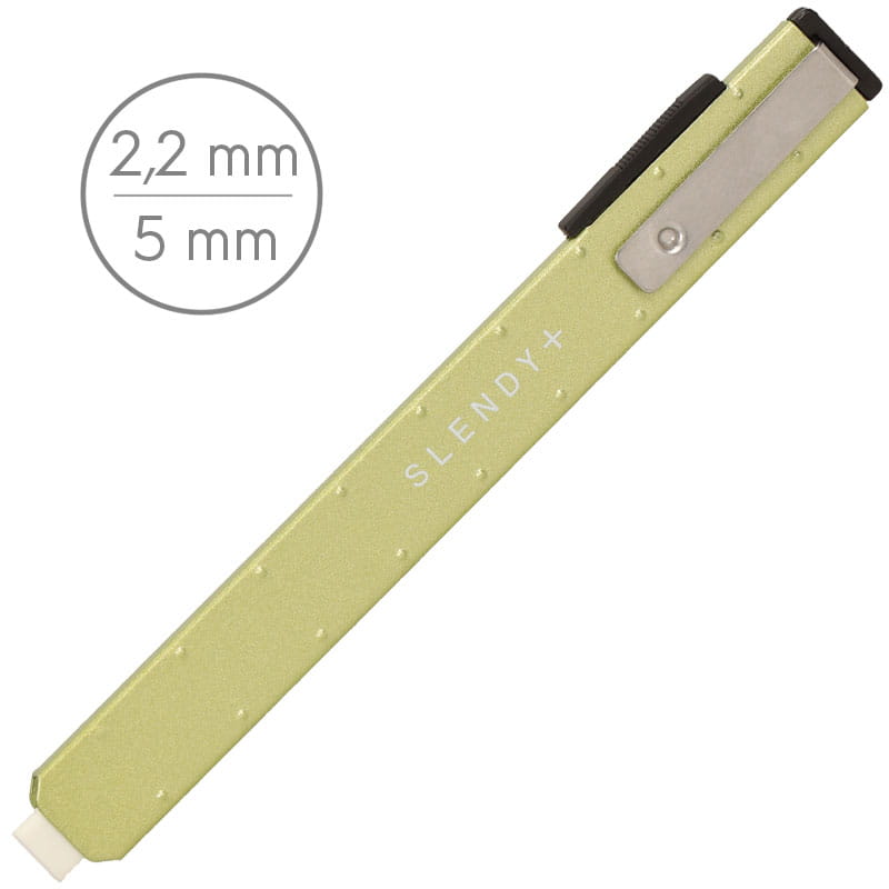 Wygodna w obsłudze gumka automatyczna z wymiennym wkładem i cienką, prostokątną końcówką o wymiarach 2,2 x 6 mm. Idealna do precyzyjnego i dokładnego ścierania, korygowania detali. Wkłady posiadają ząbkowane boki, dzięki czemu nie przesuwają się w obudowie. Smukła, metalowa obudowa dostępna w kilku kolorach. Lekka i wytrzymała. Gumka zarówno dla profesjonalistów, jak i hobbystów.