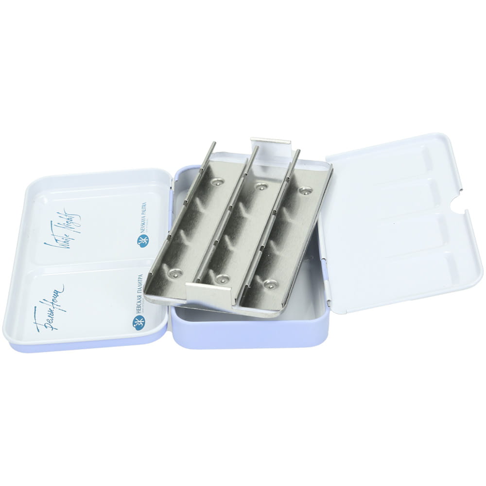 Wysokiej jakości metalowa kasetka przeznaczona do przechowywania farb akwarelowych w kostkach. Wytrzymała i ergonomiczna idealnie sprawdzi się zarówno w pracy w studio jak i w plenerze. Rozkładana część służy jako paletka do mieszania kolorów. Wnętrze kasetki jest wyjmowane, co ułatwia czyszczenie i wymianę farb. Produkt docenią artyści lubiący tworzyć własne palety kolorów.