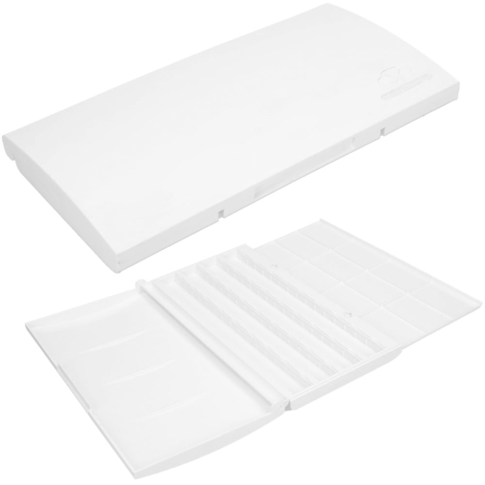 Kasetka na akwarele w kostkach Białe Noce wykonana jest z białego, wytrzymałego plastiku. Doskonała opcja dla artystów, którzy lubią komponować własne gamy kolorystyczne farb akwarelowych. Kasetka posiada specjalny system przytrzymujący kostki farb we wnętrzu oraz paletkę do mieszania kolorów. Przystosowana do standardowych, pełnych kostek. Mieści do 36 akwarelowych kostek.