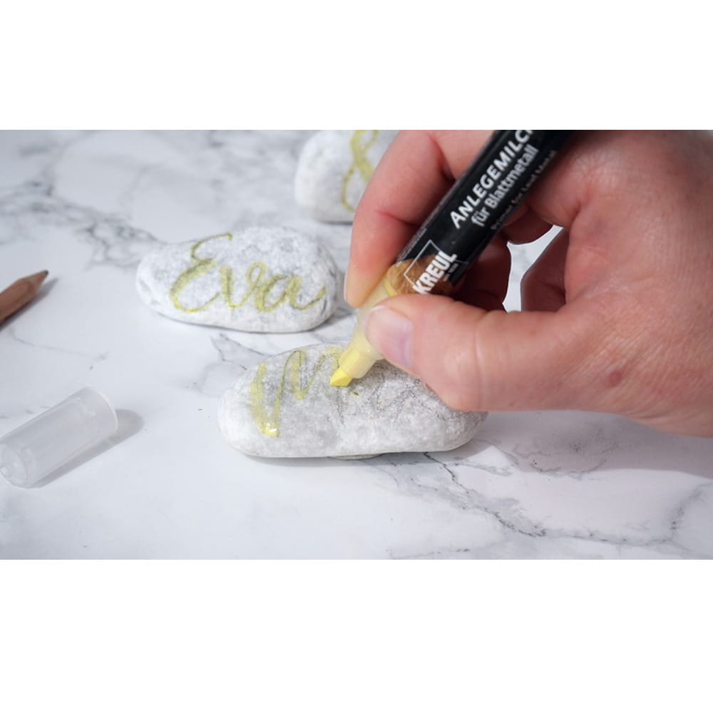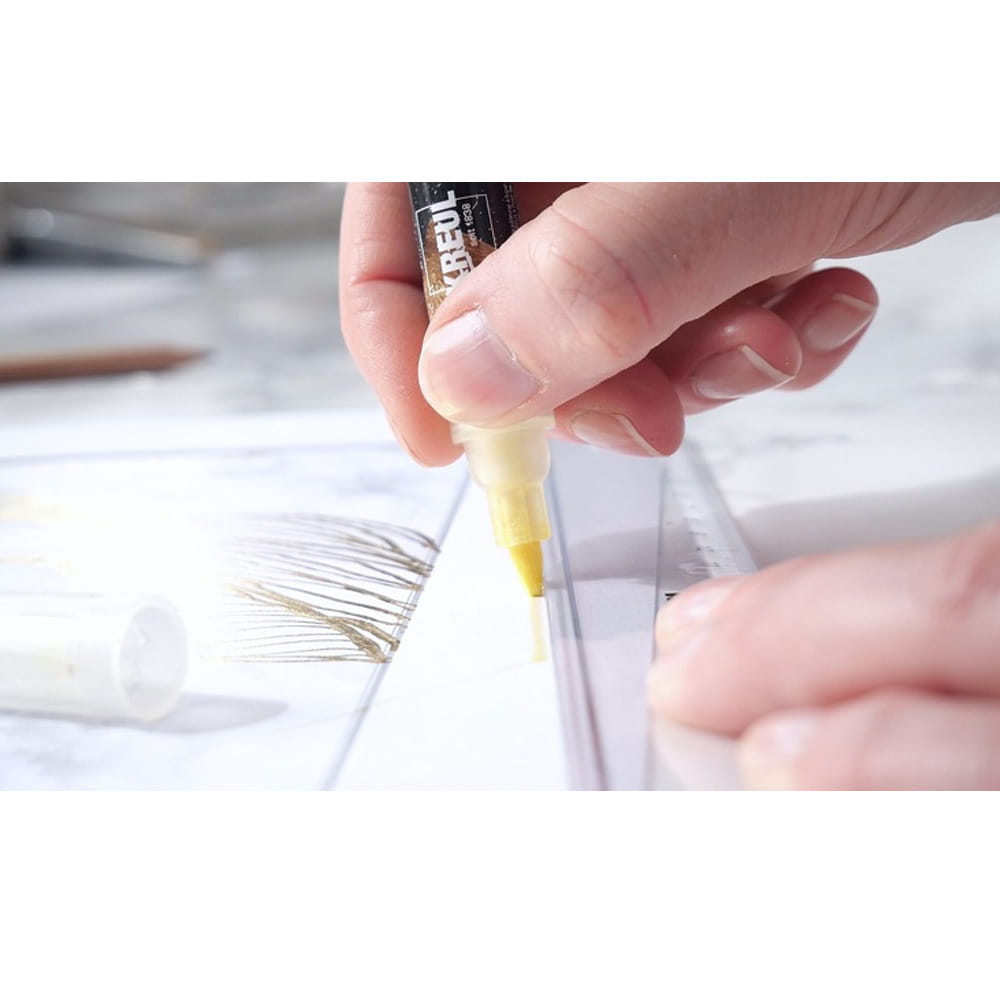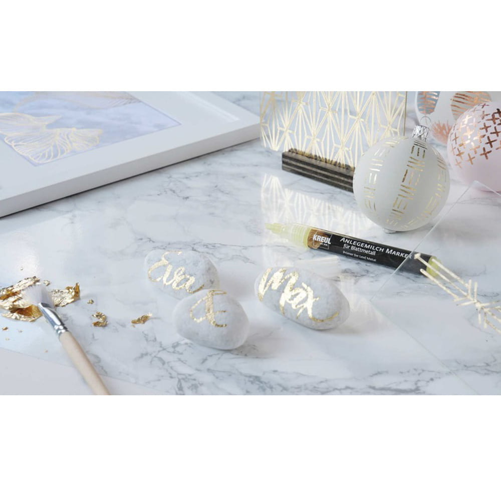 Marker do płatków złota. Pisak ze specjalnym klejem do mocowania sprasowanego metalu oraz płatków metalu. Doskonały do prac precyzyjnych oraz napisów. Końcówka pozwala na rysowanie różnej grubości linii - od 2 do 5 mm. Można nim zastępować mikstion w pracach wymagających dokładności.