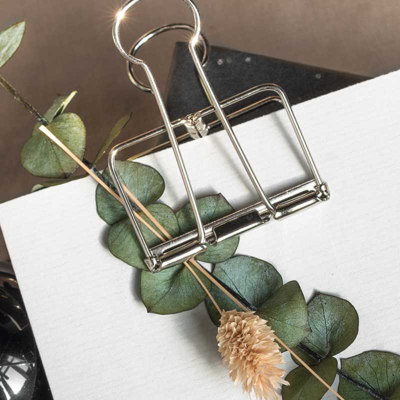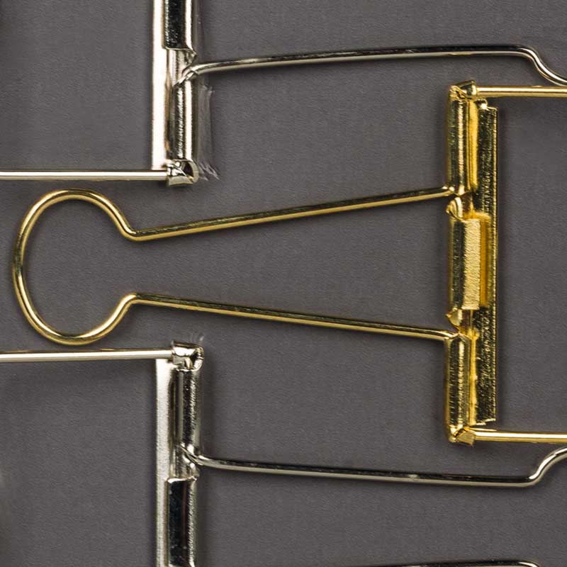 Klipsy wykonane w całości z wytrzymałego metalu w złotym i srebrnym kolorze są pozbawione środka – tworzy je sama metalowa ramka. Ma to nie tylko walory estetyczne, ale również praktyczne, które szczególnie doceniają artyści zajmujący się urban sketchingiem – skonstruowane w taki sposób klipsy trzymają kartki szkicownika na swoim miejscu, jednocześnie nie zasłaniając przestrzeni rysunkowej i nie odciągając uwagi od rysunku. Ponadto ich delikatna konstrukcja nie odkształca papieru.