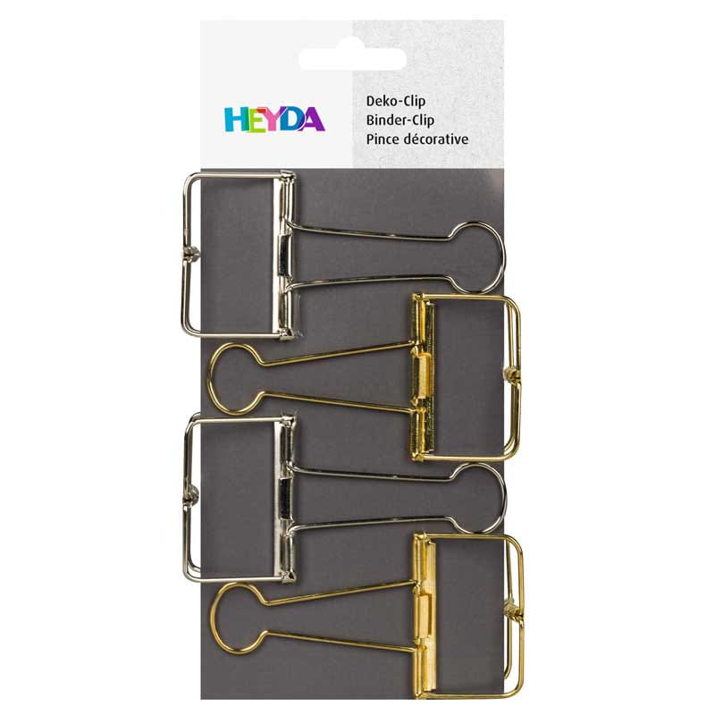 Klipsy biurowe ozdobne Heyda 4 szt. 50 mm, złote i srebrne