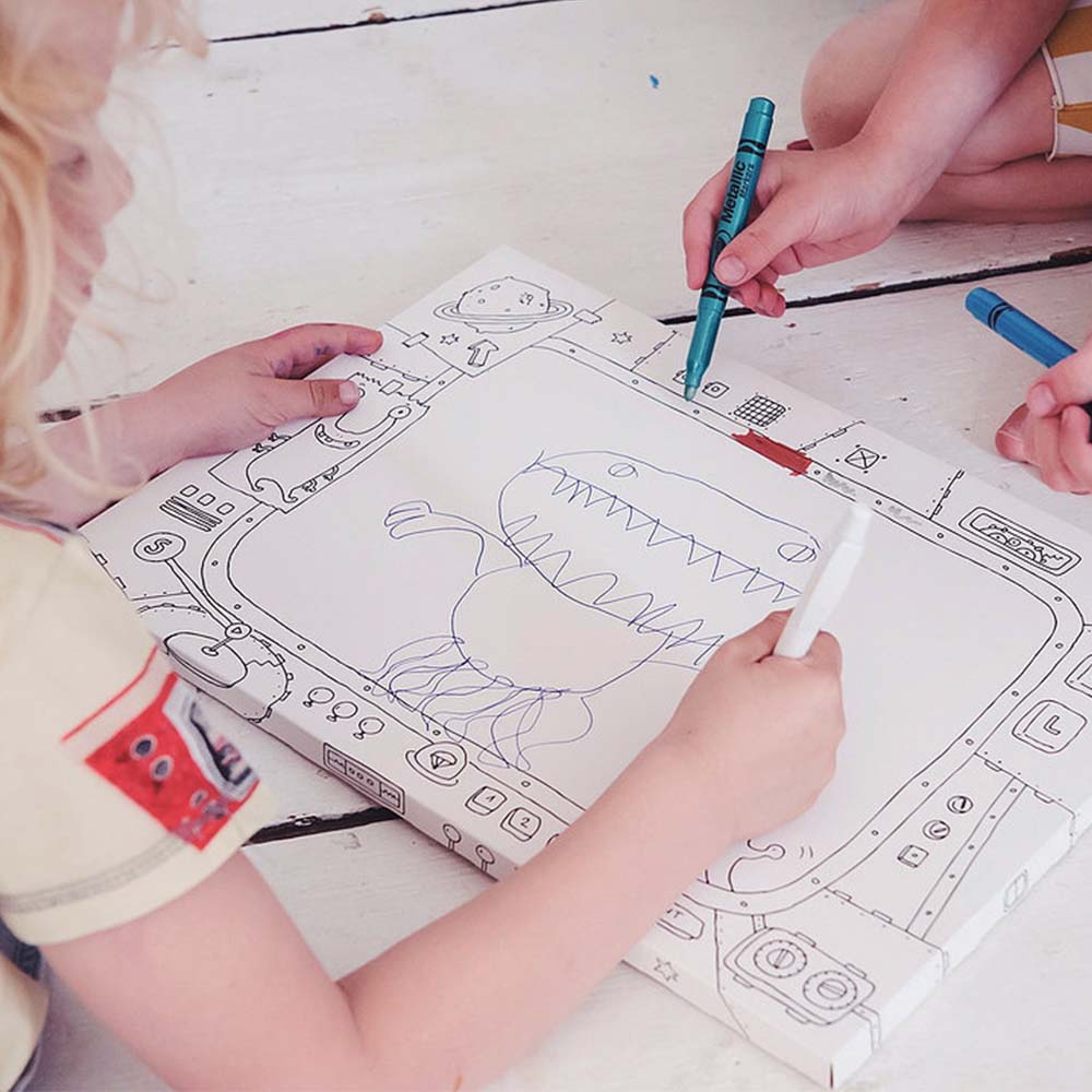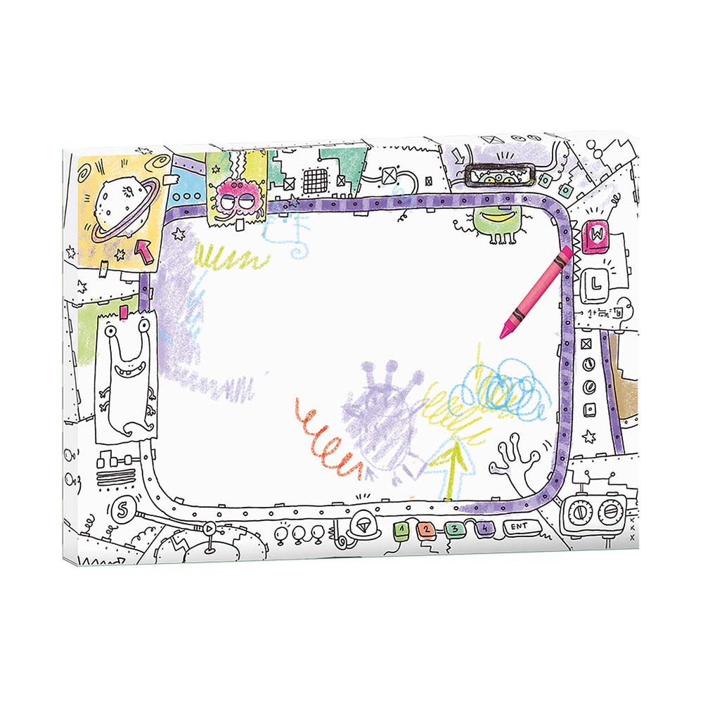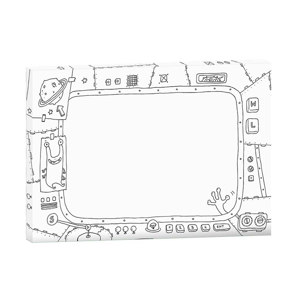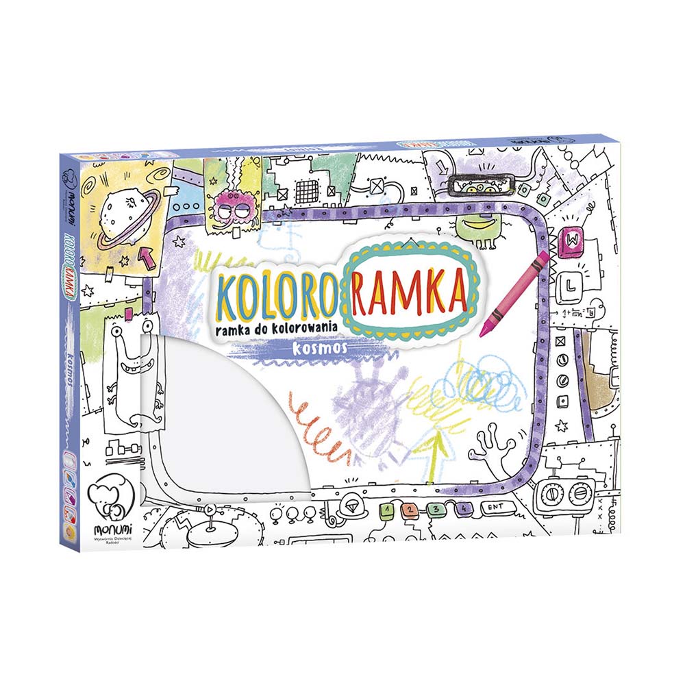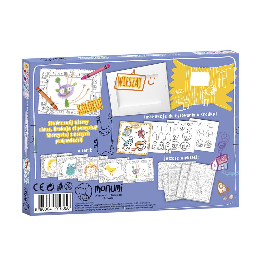 KOLORORAMKA w rozmiarze L to nieduży obrazek do kolorowania osadzony od spodu na przestrzennej ramce o grubości 1,5 cm. Z tyłu otwór do zawieszenia (wzór opatentowany). Rant ozdobiony wzorem na całym obwodzie. Środek kolorowanki jest pusty - przeznaczony na własnoręczny napis, rysunek lub wklejone zdjęcie. By dziecku było łatwiej, do obrazka dołączona jest mini książeczka z wzorami prostych rysunków, które może wykonać samodzielnie.