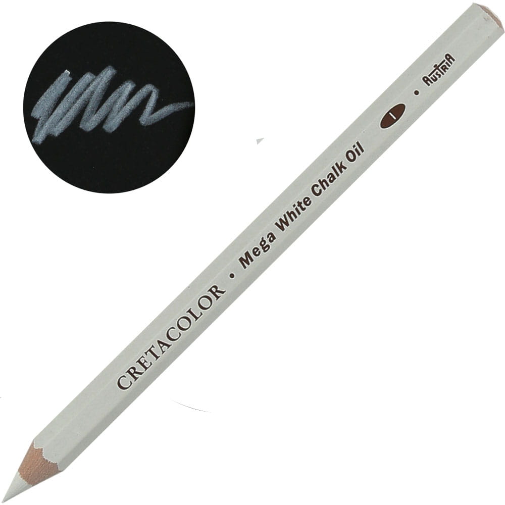 Gruba, biała kredka artystyczna z serii Mega o średnicy 10 mm austriackiej firmy Cretacolor. Doskonale sprawdza się do podkreślenia światła w rysunku w czerniach i sepiach. Najlepiej prezentuje się na szarym, czarnym lub kolorowym papierze. Grubość wkładu 5,5 mm dobrze sprawdza się przy wielkoformatowych pracach, gdyż umożliwia otrzymanie szerszej kreski. Biel w formie woskowej kredki, która w odróżnieniu od suchej pasteli nie rozmazuje się.