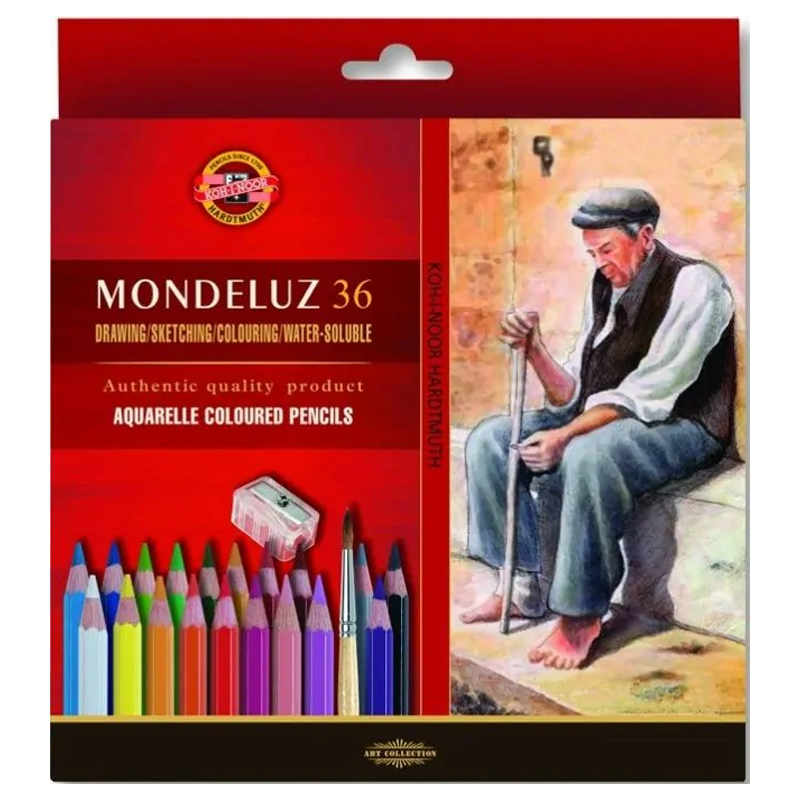 Kredki akwarelowe Mondeluz Koh-i-Noor - 36 szt. + pędzle i temperówka