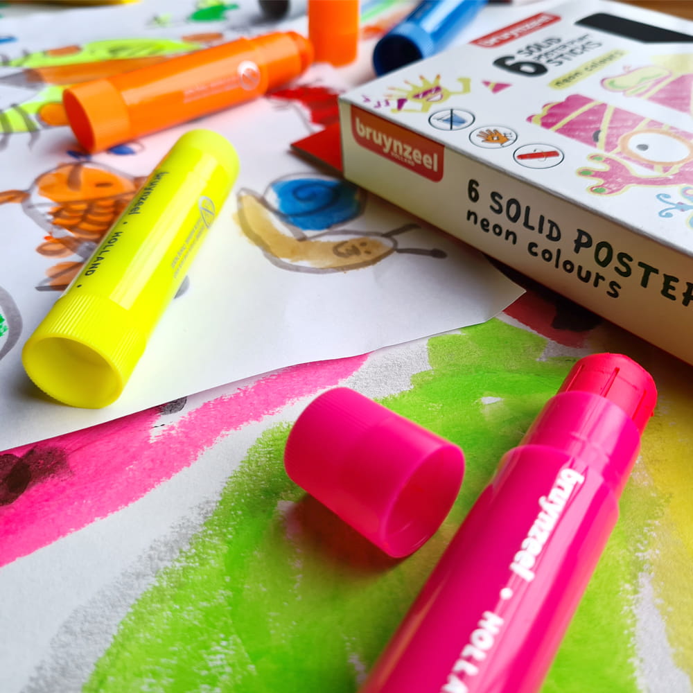 Poręczne kredki z farbą plakatową w sztyfcie marki Bruynzeel. Zostały opracowane z myślą o młodych artystach. Stymulują małą motorykę i zapewniają wiele godzin zabawy. Do ich użycia nie potrzeba wody ani pędzli. Malowanie jest przyjemne dzięki gładkiej, kremowej konsystencji oraz wygodnym sztyftom. Wystarczy przekręcić i od razu można tworzyć.