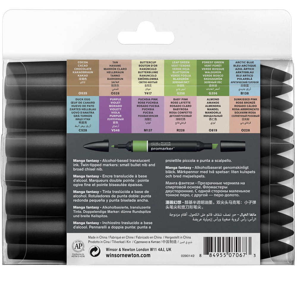 Markery alkoholowe Promarker Winsor & Newton zestaw 12 + 1 szt. - Manga Fantasy