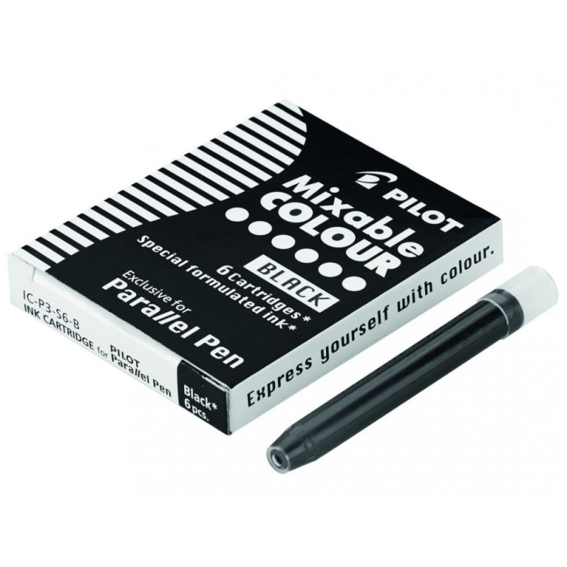 Nabój w kolorze czarnym o pojemności 1 ml do pióra Pilot Parallel Pen. Odcień atramentu może się nieznacznie zmieniać w zależności od użytego papieru.