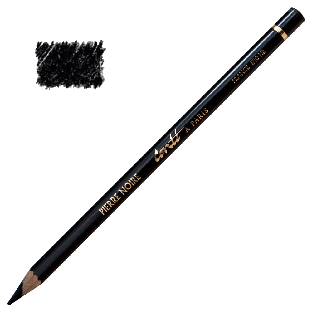 Ołówki Pierre Noire francuskiej firmy Conté à Paris mają rdzeń stworzony ze sprasowanej pasty pigmentowej. Dzięki temu zapewniają wyjątkowo głęboką czerń, bardzo dobre krycie i matowe wykończenie. Można ich używać nie tylko na papierze, ale również na podobraziach.