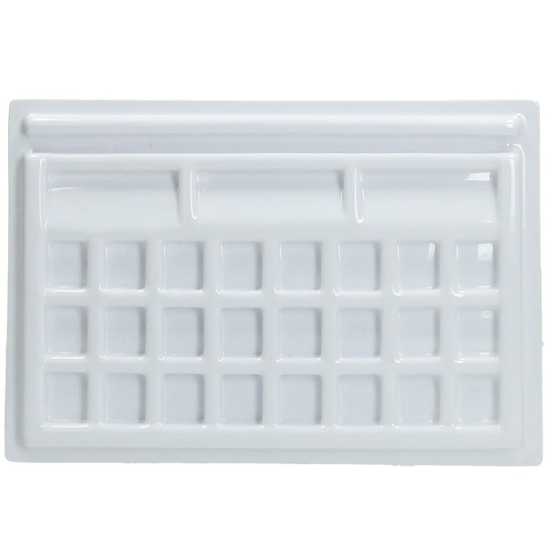 Prostokątna paleta malarska wykonana z trwałego, gładkiego tworzywa sztucznego. Posiada 27 wgłębień na farby, co daje możliwość łączenia na niej wielu kolorów naraz. Wygodna i komfortowa w użyciu. Przeznaczona do mieszania farb akwarelowych.