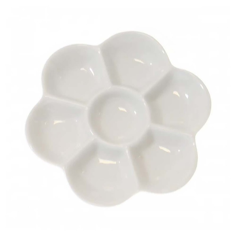 Ceramiczna okrągła paletka. Posiada 7 kulistych zagłębień na farby, dzięki czemu idealnie sprawdzi się podczas używania dużej ilości kolorów lub tworzeniu wielu odcieni jednocześnie. Idealna do mieszania farb akwarelowych. Elegancka - pięknie prezentuje się w domu lub w studio. Średnica: 12 cm.