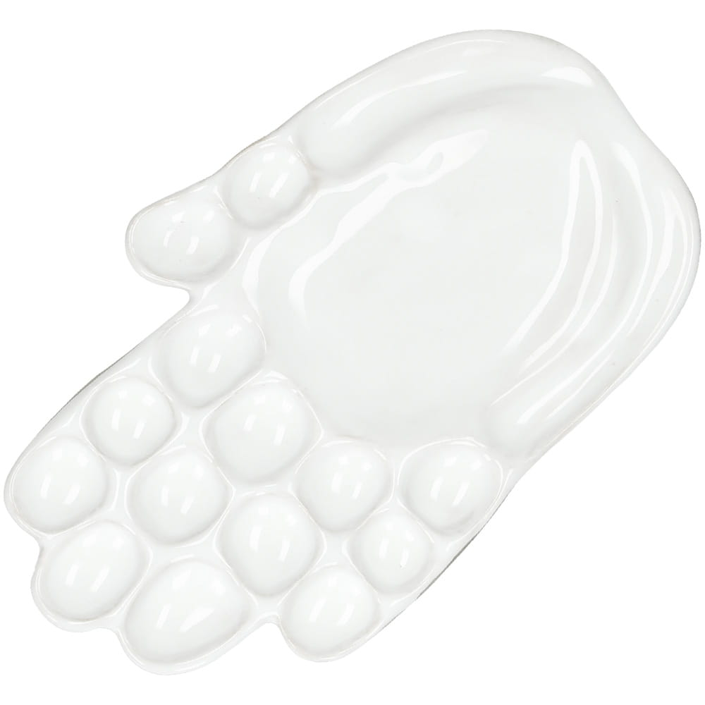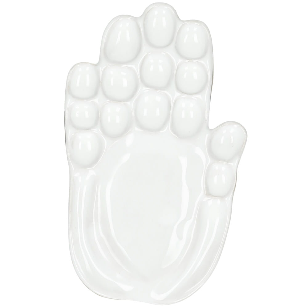 Ceramiczna paleta do akwareli w kształcie dłoni, produkcja Polska. Paletka posiada 14 różnorodnych wgłębień dzięki czemu idealnie sprawdzi się podczas używania dużej ilości kolorów lub tworzeniu wielu odcieni jednocześnie. Elegancka - pięknie prezentuje się w domu lub w studio. Paletka wykonana ręcznie.