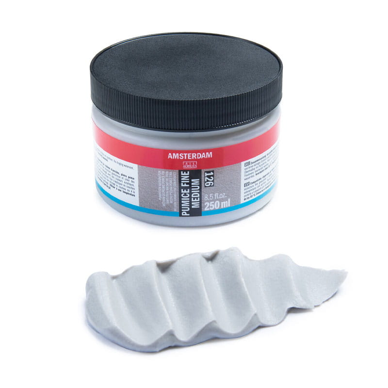Szara drobnoziarnista pasta strukturalna Pumeks Medium Fine nada pracy szorstką teksturę. Można nakładać samą pastę, mieszać z farbą lub pomalować po nałożeniu. Odcień pasty wpływa na uzyskany kolor po zmieszaniu jej z farbą. Ziarnista konsystencja znacznie zwiększa osadzanie się koloru. Pumeks dostępny w trzech stopniach rozdrobnienia: drobnej, średniej i grubej. Drobny często jest stosowany do tworzenia tła. Pumeks jest używany do budowy modeli w małej skali - powierzchni takich jak np. beton, żwir, kamień. Nakładać w temperaturze powyżej 10°C. Chronić przed mrozem. Naczynia czyścić wodą.
