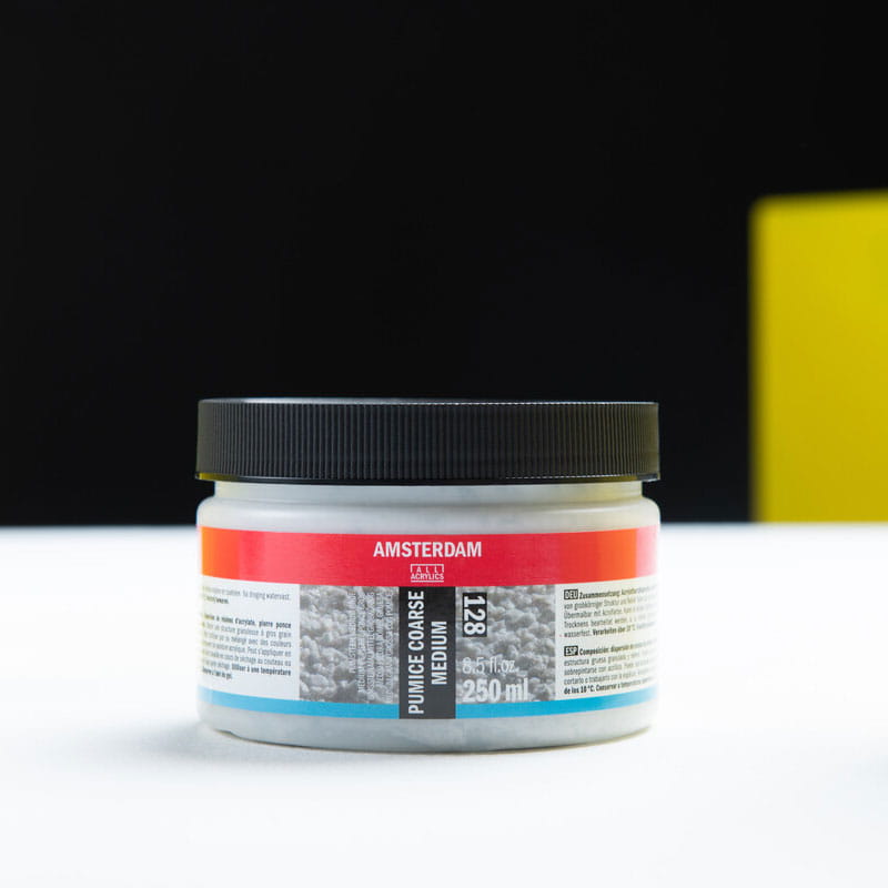 Szara gruboziarnista pasta strukturalna Pumeks Medium Fine nada pracy szorstką teksturę. Można nakładać samą pastę, mieszać z farbą lub pomalować po nałożeniu. Odcień pasty wpływa na uzyskany kolor po zmieszaniu jej z farbą. Ziarnista konsystencja znacznie zwiększa osadzanie się koloru. Pumeks dostępny w trzech stopniach rozdrobnienia: drobnej, średniej i grubej. Drobny często jest stosowany do tworzenia tła. Pumeks jest używany do budowy modeli w małej skali - powierzchni takich jak np. beton, żwir, kamień. Nakładać w temperaturze powyżej 10°C. Chronić przed mrozem. Naczynia czyścić wodą.