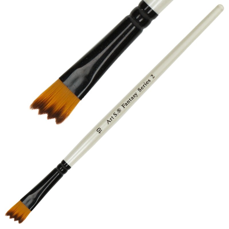 Pędzel Art S. Fantasy serii 2 to pędzel o skośnym ząbkowanym kształcie oraz płaskim włosiem. Włos jest syntetyczny, przyciemniony na końcówce. Trzonek pędzla jest drewniany oraz pokryty lakierem w kolorze perłowym. Posiada czarną skuwkę. Pędzel do uzyskania oryginalnych efektów. Unikatowy kształt pędzla pozwala uzyskać niestandardowy ślad.