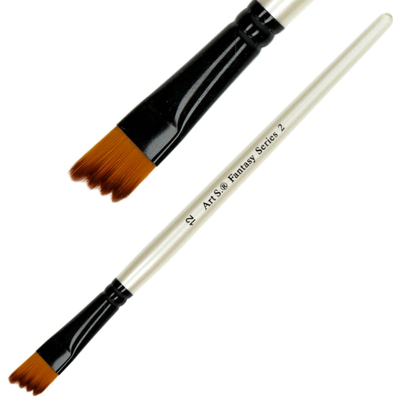 Pędzel Art S. Fantasy serii 2 to pędzel o skośnym ząbkowanym kształcie oraz płaskim włosiem. Włos jest syntetyczny, przyciemniony na końcówce. Trzonek pędzla jest drewniany oraz pokryty lakierem w kolorze perłowym. Posiada czarną skuwkę. Pędzel do uzyskania oryginalnych efektów. Unikatowy kształt pędzla pozwala uzyskać niestandardowy ślad.
