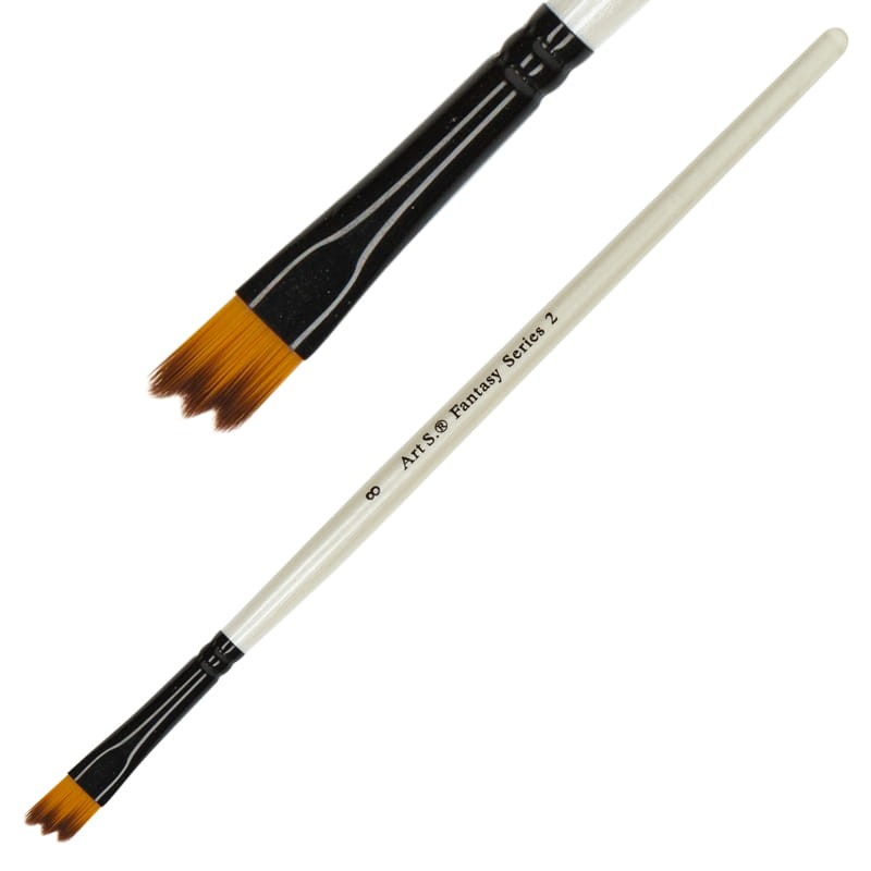 Pędzel Art S. Fantasy serii 2 to pędzel o skośnym ząbkowanym kształcie oraz płaskim włosiem. Włos jest syntetyczny, przyciemniony na końcówce. Trzonek pędzla jest drewniany oraz pokryty lakierem w kolorze perłowym. Posiada czarną skuwkę. Pędzel do uzyskania oryginalnych efektów. Unikatowy kształt pędzla pozwala uzyskać niestandardowy ślad.