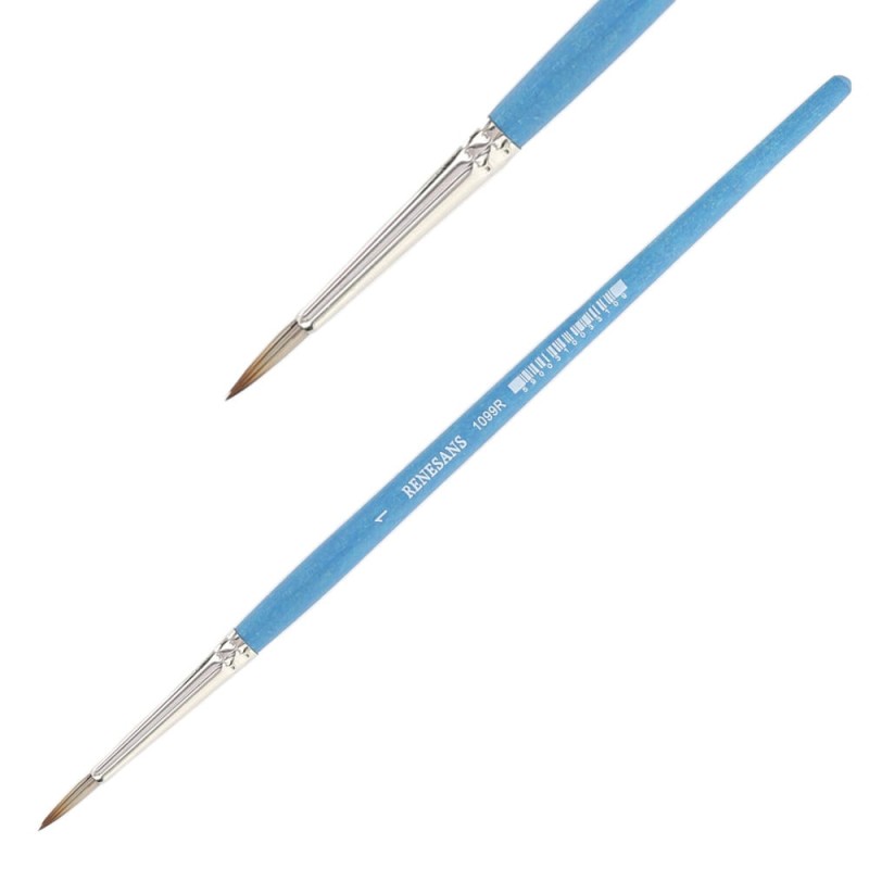 Seria 1099R to okrągłe pędzle z włosia syntetycznego będącego imitacją włosia mangusty, które jest miękkie i dobrze chłonie wodę, dlatego głównie przeznaczone jest do technik wodnych (akwarela) ale również do farb akrylowych lub laserunkowego malarstwa olejnego. Pędzle mają krótką, drewnianą rączkę w niebieskim kolorze i metalową skuwkę.