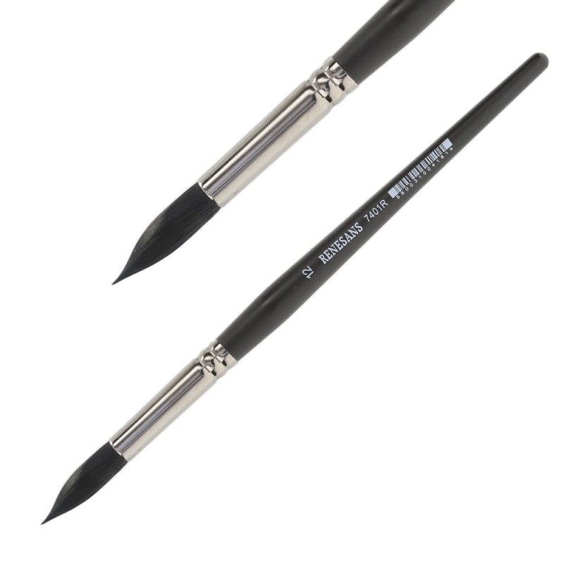 Seria 7401R to okrągłe pędzle z włosia syntetycznego, będące imitacją włosia szarej wiewiórki. Pędzle mają krótką, czarną, lakierowaną rączkę i metalową skuwkę. Przeznaczone do farb akwarelowych.