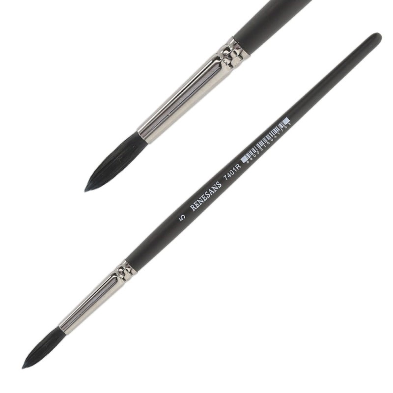 Seria 7401R to okrągłe pędzle z włosia syntetycznego, będące imitacją włosia szarej wiewiórki. Pędzle mają krótką, czarną, lakierowaną rączkę i metalową skuwkę. Przeznaczone do farb akwarelowych.