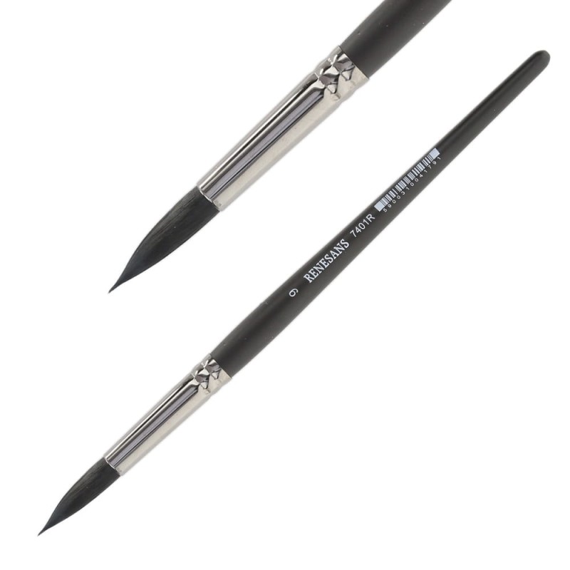 Seria 7401R to okrągłe pędzle z włosia syntetycznego, będące imitacją włosia szarej wiewiórki. Pędzle mają krótką, czarną, lakierowaną rączkę i metalową skuwkę. Przeznaczone do farb akwarelowych.