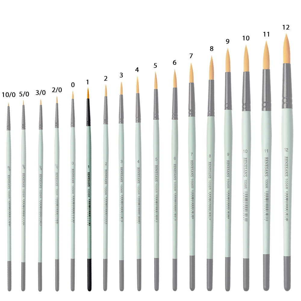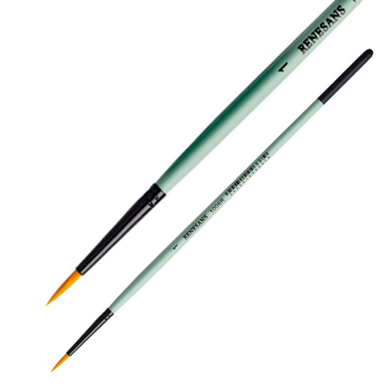 Seria 1006R marki Renesans posiada okrągłe, syntetyczne pędzle z miękkim, złotym włosiem oraz krótką, zieloną rączką i metalową skuwką.