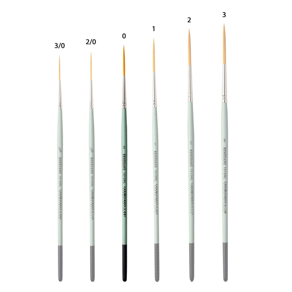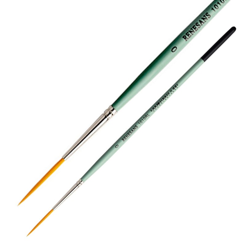 Seria 1010RL z marki Renesans posiada okrągłe, syntetyczne pędzle, z miękkim, złotym włosiem oraz krótką, zieloną rączką i metalową skuwką. Wydłużone włosie ułatwia malowanie prostych linii. Dobrze sprawdzi się np. w liternictwie.