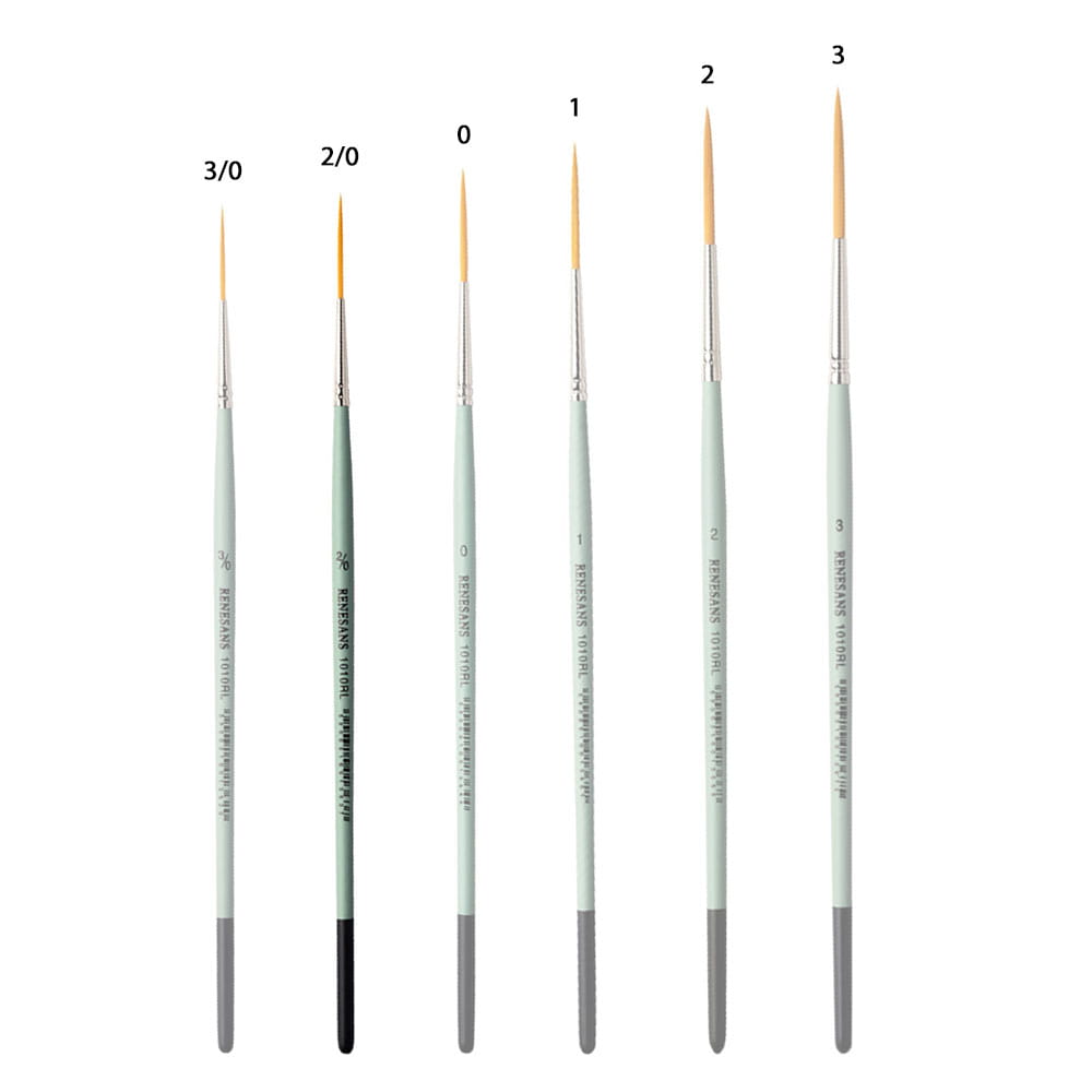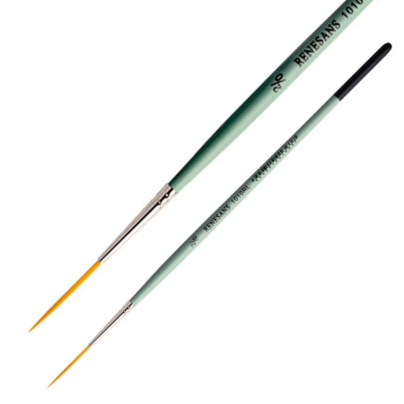 Seria 1010RL z marki Renesans posiada okrągłe, syntetyczne pędzle, z miękkim, złotym włosiem oraz krótką, zieloną rączką i metalową skuwką. Wydłużone włosie ułatwia malowanie prostych linii. Dobrze sprawdzi się np. w liternictwie.