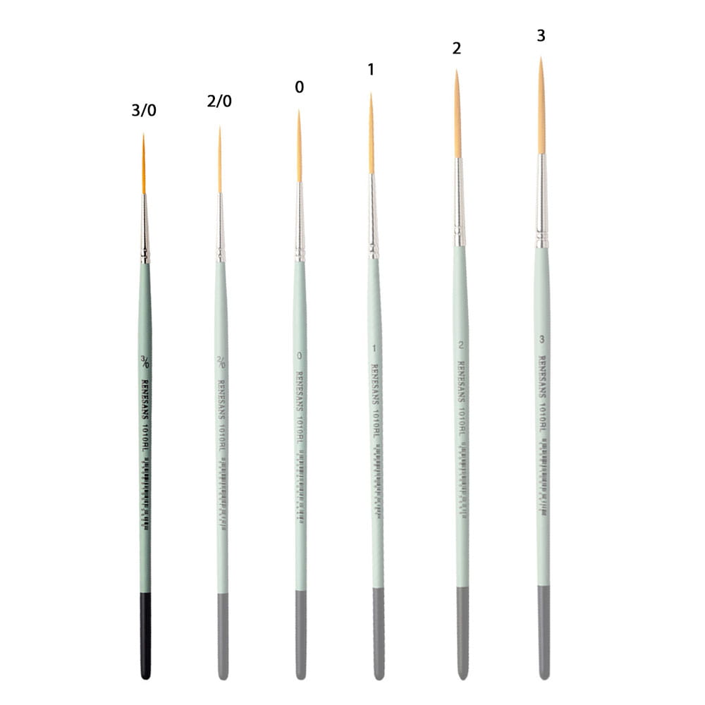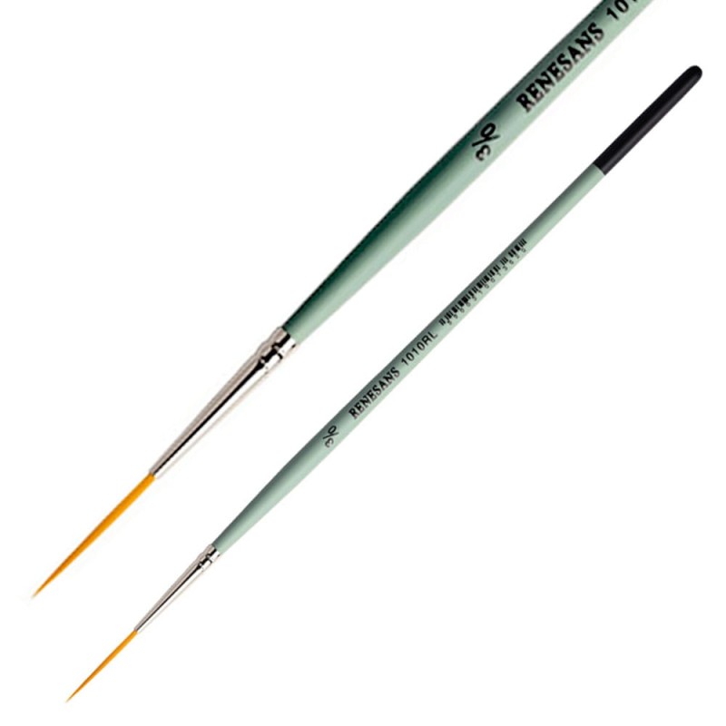 Seria 1010RL z marki Renesans posiada okrągłe, syntetyczne pędzle, z miękkim, złotym włosiem oraz krótką, zieloną rączką i metalową skuwką. Wydłużone włosie ułatwia malowanie prostych linii. Dobrze sprawdzi się np. w liternictwie.
