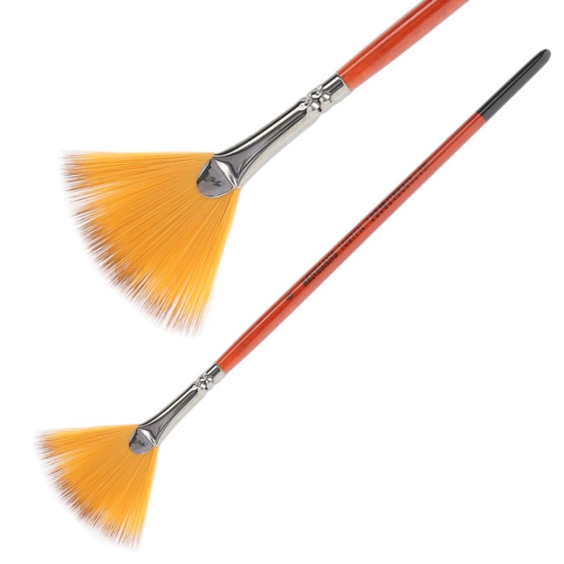 Pędzel wachlarzowy, z syntetycznym włosem w złoto - brązowym kolorze. Miękkie i elastyczne włosie umieszczone w krótkim, lakierowanym trzonku świetnie sprawdzi zarówno w malarstwie olejnym jak i akrylowym.