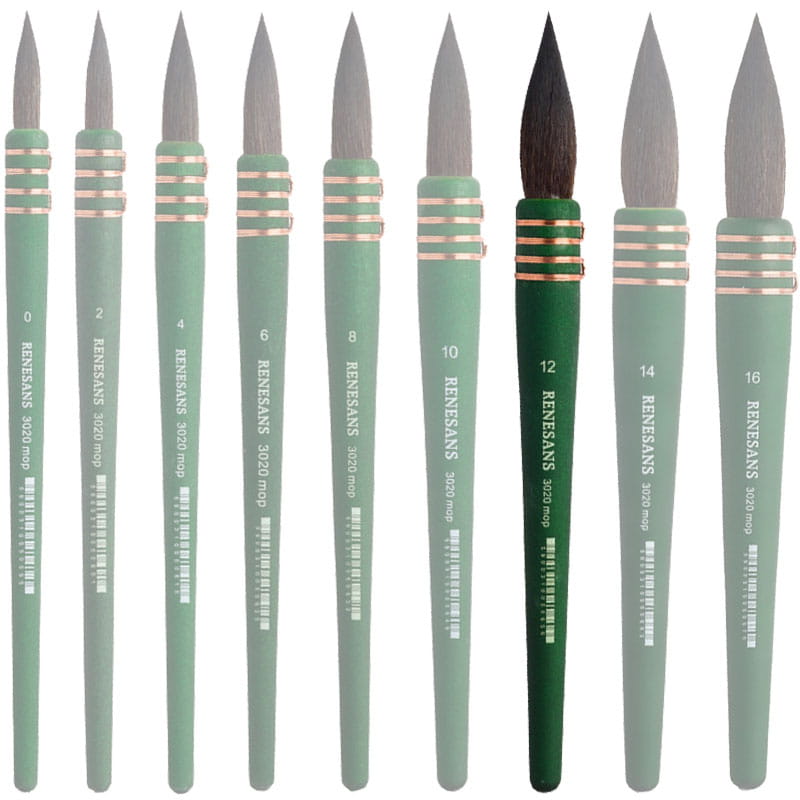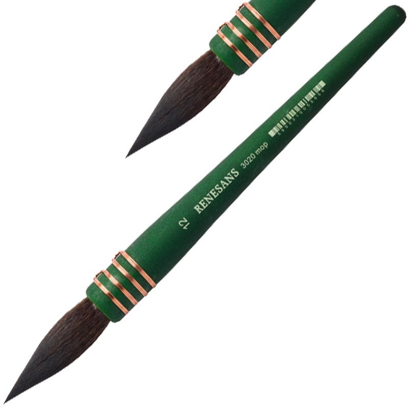 Pędzel akwarelowy Renesans z serii 3020 to imitacja wiewiórki szarej. Włosie pędzla to materiał najnowszej generacji - bardzo chłonny. Okrągła, zielona, matowa rączka świetnie leży w dłoni.