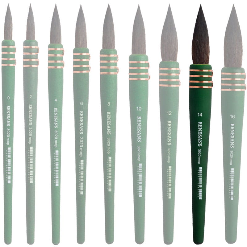 Pędzel akwarelowy Renesans z serii 3020 to imitacja wiewiórki szarej. Włosie pędzla to materiał najnowszej generacji - bardzo chłonny. Okrągła, zielona, matowa rączka świetnie leży w dłoni.