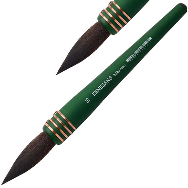 Pędzel akwarelowy Renesans z serii 3020 to imitacja wiewiórki szarej. Włosie pędzla to materiał najnowszej generacji - bardzo chłonny. Okrągła, zielona, matowa rączka świetnie leży w dłoni.
