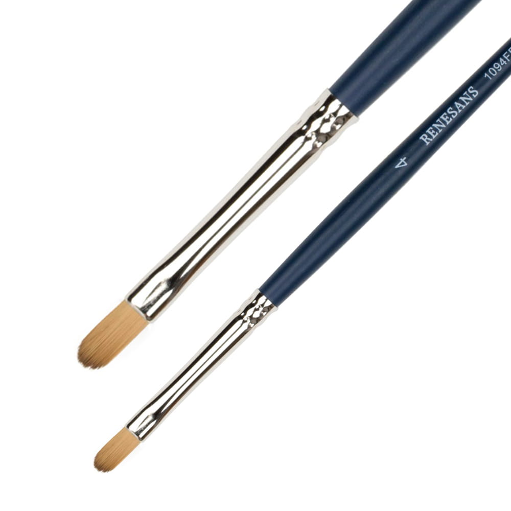 Seria 1094FR marki Renesans posiada syntetyczne pędzle imitujące naturalne włosie kun, w kształcie kociego języka. Jest bardzo miękkie, chłonne i odporne. Seria cechuje się krótką, drewnianą rączką w kolorze granatowym. Przeznaczone do akwareli, akryli lub laserunkowego malarstwa olejnego.
