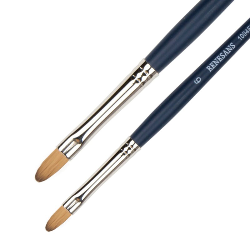 Seria 1094FR marki Renesans posiada syntetyczne pędzle imitujące naturalne włosie kun, w kształcie kociego języka. Jest bardzo miękkie, chłonne i odporne. Seria cechuje się krótką, drewnianą rączką w kolorze granatowym. Przeznaczone do akwareli, akryli lub laserunkowego malarstwa olejnego.