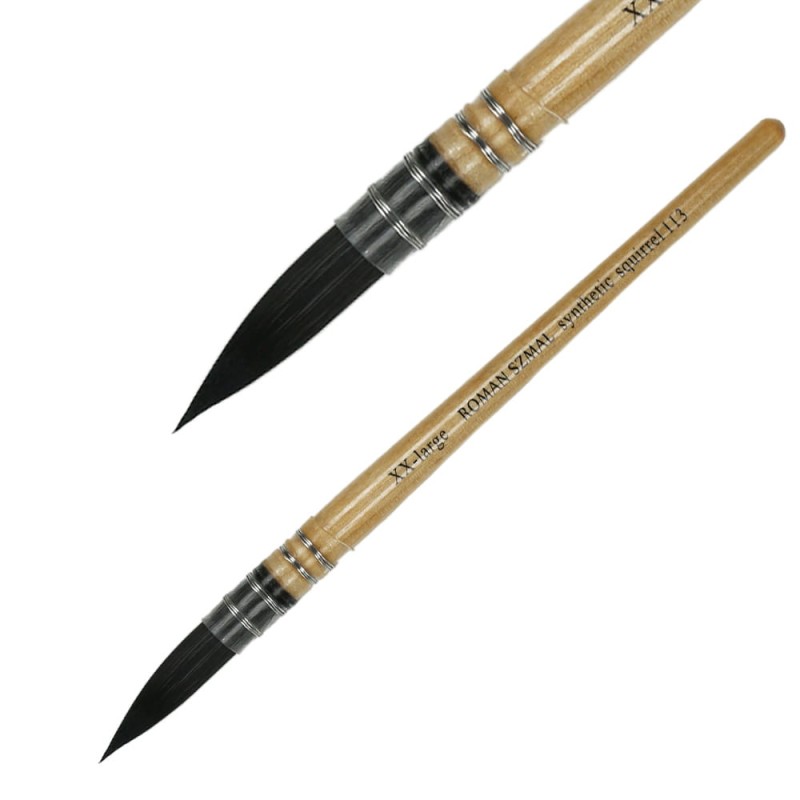 Seria 113 to okrągłe pędzle marki Roman Szmal Art z syntetycznym włosiem bardzo dobrze imitującym włosie wiewiórki – doskonale przenosi pigment na papier, jest miękkie, sprężyste, a dzięki dużej objętości jest w stanie zaabsorbować dużą ilość farby. Trzonek jest krótki, drewniany, pokryty przezroczystym lakierem. Zakończony precyzyjnym szpicem.