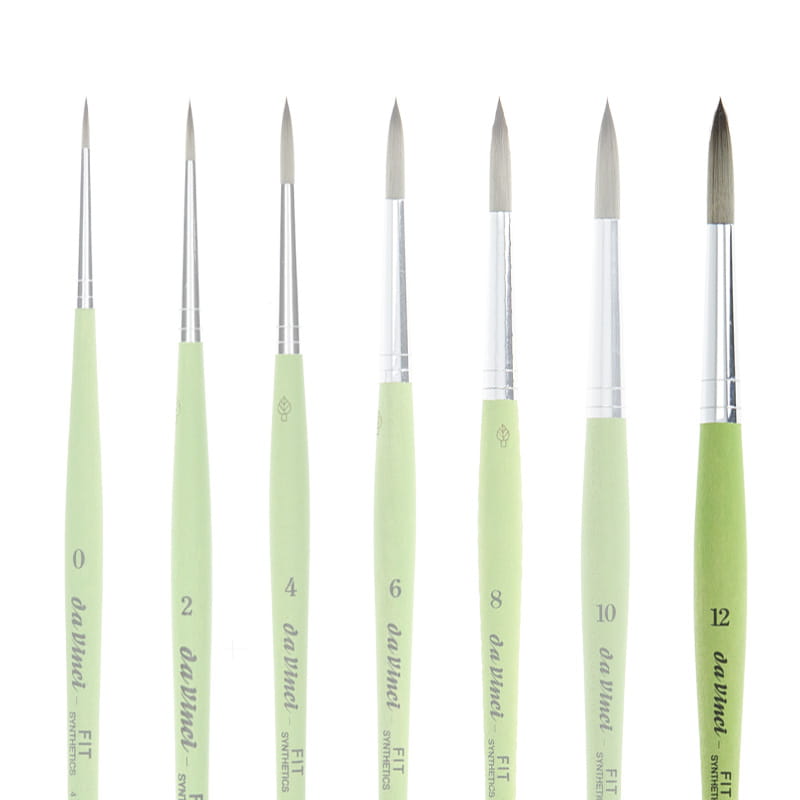 Pędzle da Vinci Fit Synthetics to popularna seria uniwersalnych pędzli dla uczniów, studentów i hobbystów. Doskonale sprawdzają się przy malowaniu farbami akrylowymi, gwaszami, temperami i farbami plakatowymi.
