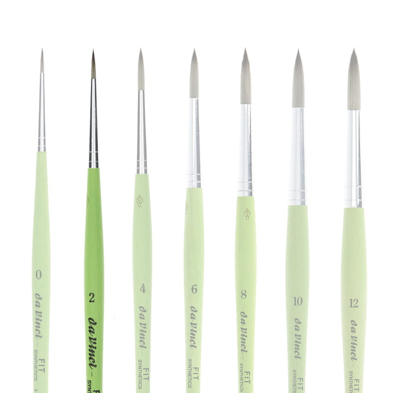 Pędzle da Vinci Fit Synthetics to popularna seria uniwersalnych pędzli dla uczniów, studentów i hobbystów. Doskonale sprawdzają się przy malowaniu farbami akrylowymi, gwaszami, temperami i farbami plakatowymi.