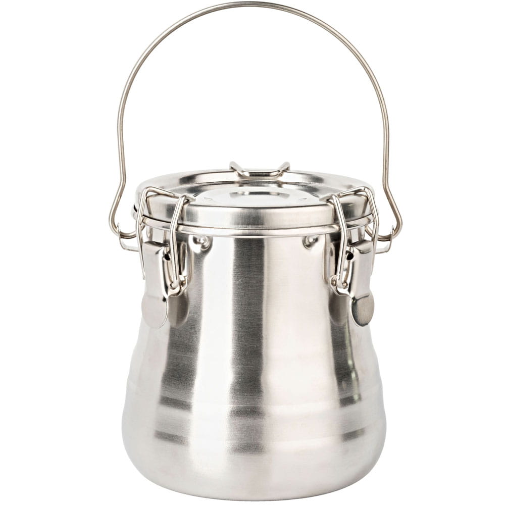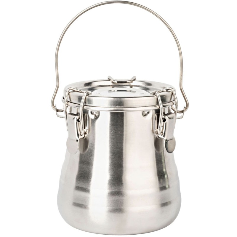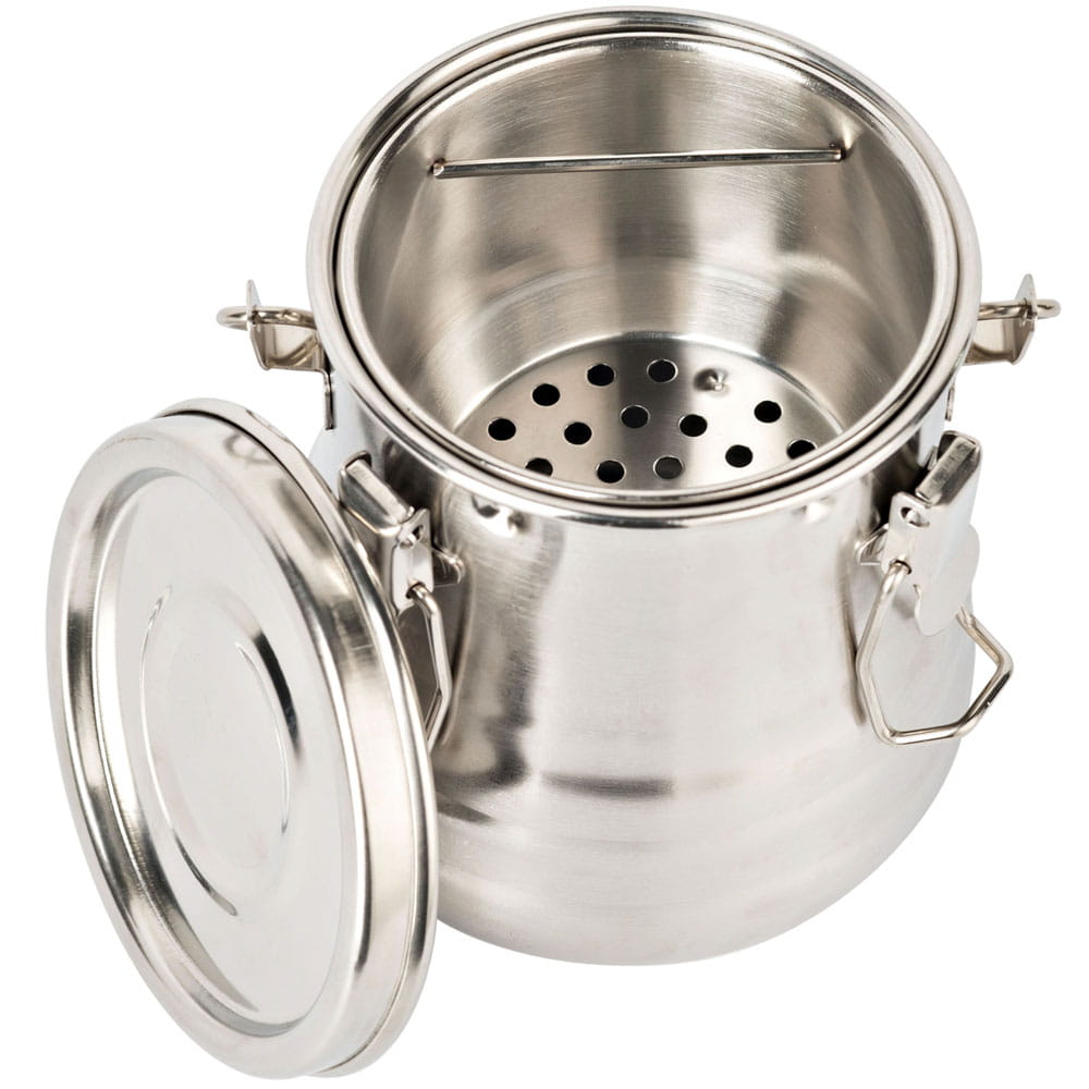 Stalowy pojemnik do mycia pędzli z pokrywką. W pojemniczku znajduje się metalowe sitko, które ułatwia mycie i odsączenie zabrudzonych pędzli. Przykrywka posiada gumową uszczelkę zapobiegającą wyciekaniu płynu.