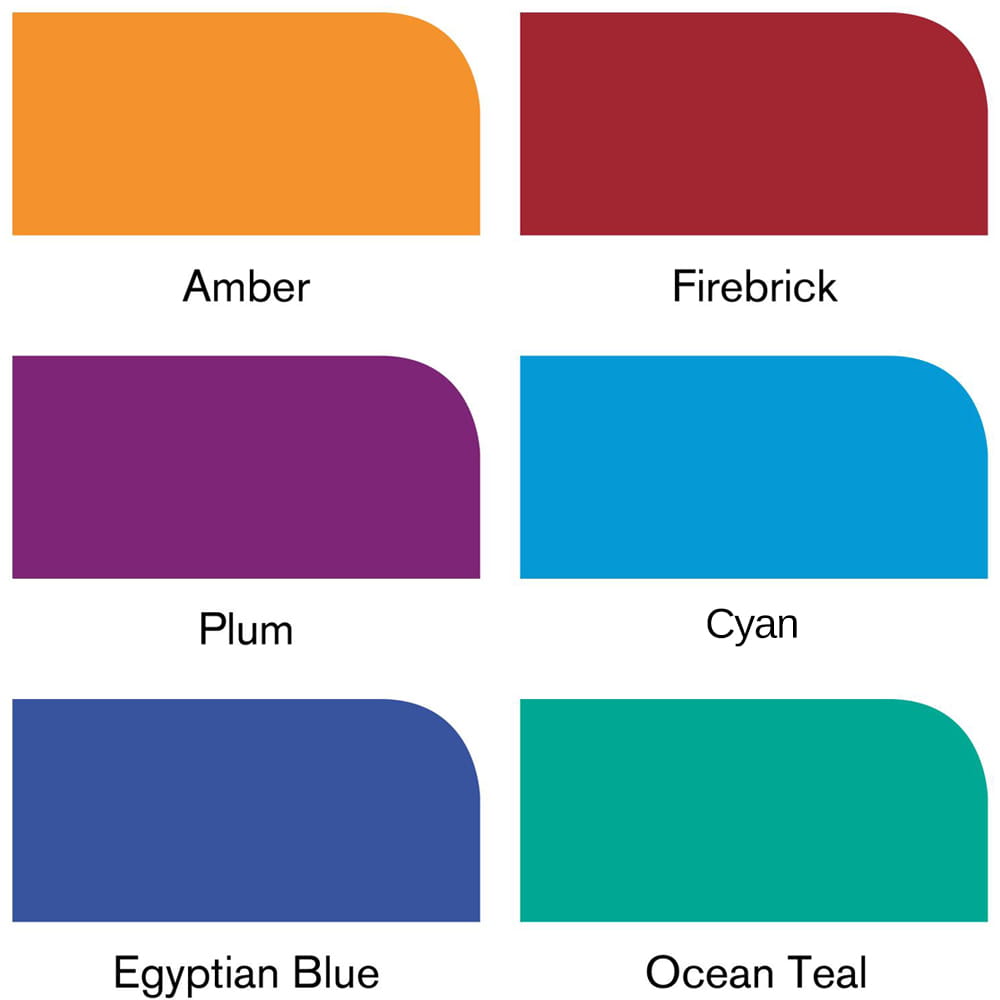 Kolory w zestawie: Amber, Friebrick, Plum, Cyan (Azure), Egyptian Blue, Ocean Teal