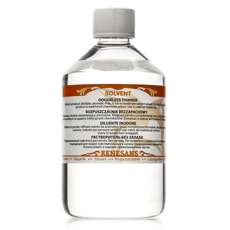 Rozpuszczalnik bezzapachowy jest bezbarwnym rozcieńczalnikiem o wysokim stopniu parowania. Jest dobrym zamiennikiem dla terpentyny, ale ma średnią siłę rozpuszczania. Szczególnie polecany alergikom oraz osobom wrażliwym na intensywne zapachy rozcieńczalników.