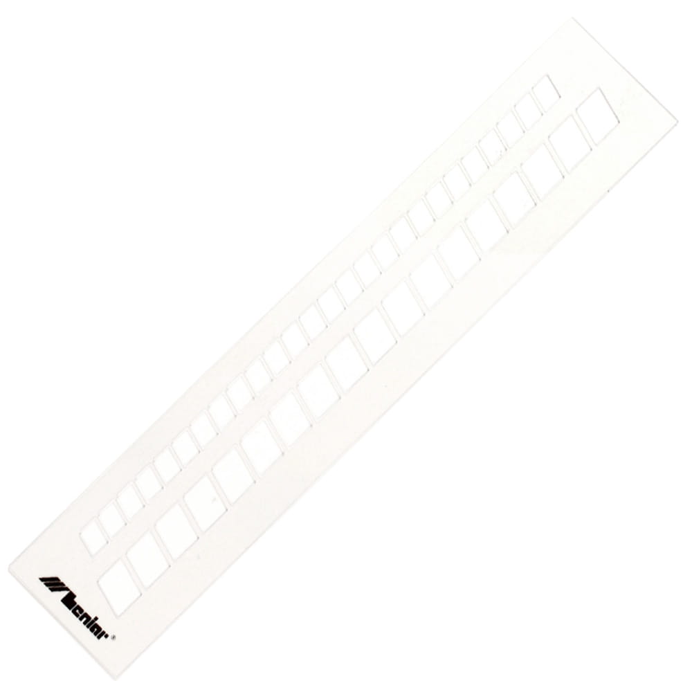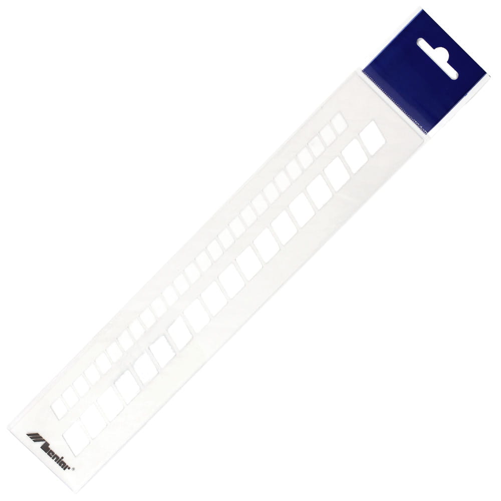 Profesjonalny szablon LENIAR do pisma technicznego pochyłego. Posiada dwie wysokości okienek: 10 mm i 15 mm. Dostosowany do kreślenia tuszem. Idealny do tworzenia wzorów i ozdobników. Wykonany z elastycznego i transparentnego materiału gr. 0,8 mm.
