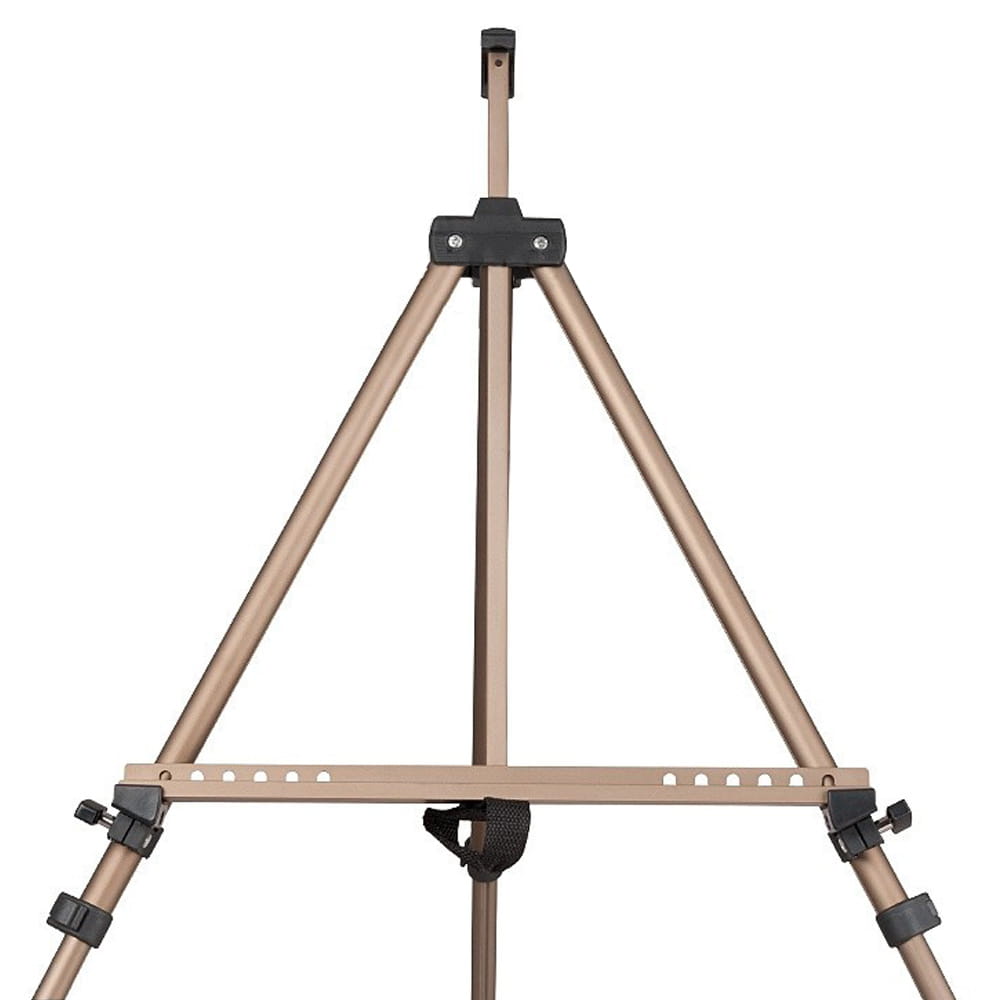 Lekka i mobilna sztaluga typu trójnóg w miedzianym kolorze. Została wykonana z aluminium i tworzywa sztucznego. Dzięki możliwości złożenia (długość sztalugi po złożeniu to 54 cm), idealnie nadaje się do pracy nie tylko w studio, ale przede wszystkim w plenerze. Świetnie sprawdzi się również na wystawach, jako stojak ekspozycyjny.