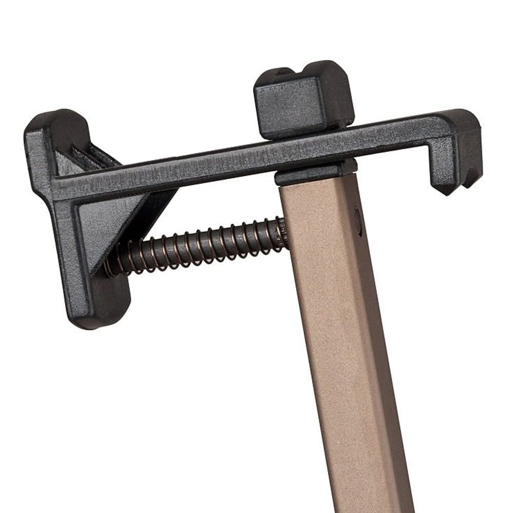 Trzy-segmentowe nogi zakończone są gumowymi stopkami i blokowane zatrzaskiem. Rozkładają się na trzy poziomy wysokości: około 42 cm, 82cm i maksymalnie do 123 cm.
