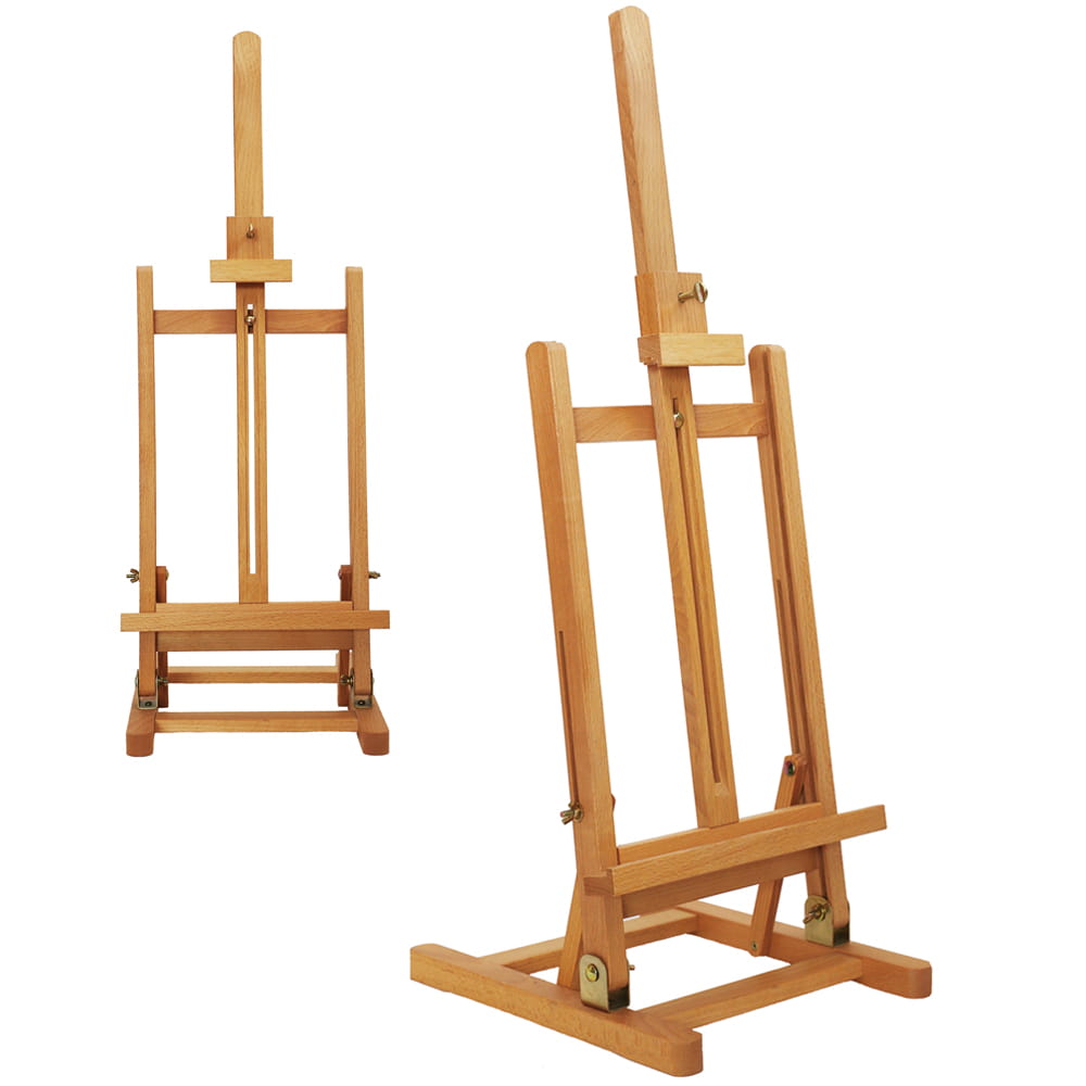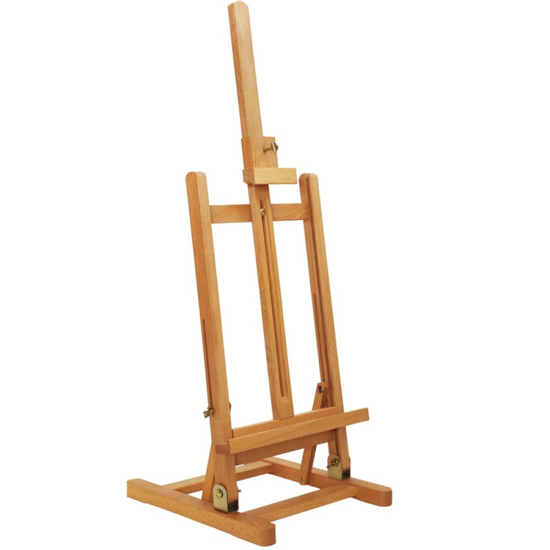 Sztaluga stołowa ADELE od firmy Bukmar została wykonana z drewna bukowego. Sztaluga ze względu na swoje rozmiary nadaje się nie tylko do malowania małych prac, ale także do ekspozycji fotografii, menu w restauracji lub innych drobnych rzeczy. Sztalugi są poddawane procesowi impregnacji olejem meblowym. Regulacja sztalugi odbywa się na zasadzie dokręcania śrub motylkowych. Jest wygodna i stabilna.