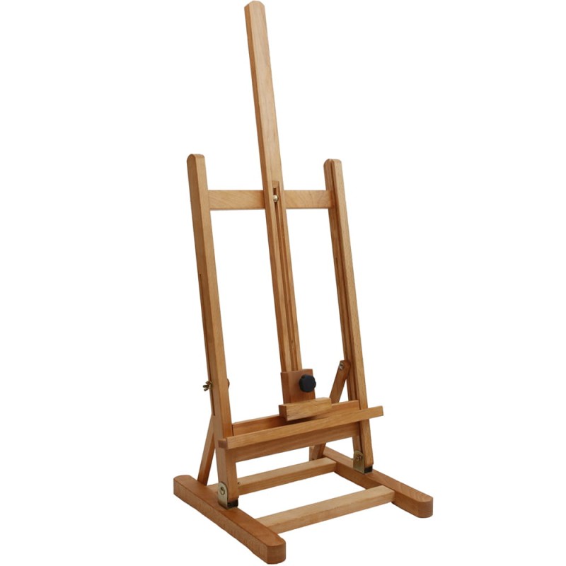 Sztaluga stołowa ALEXANDRA od firmy Bukmar została wykonana z drewna bukowego. Sztaluga ze względu na swoje rozmiary nadaje się nie tylko do malowania średnich i małych formatów prac, ale również do ekspozycji np. fotografii, plansz czy menu. Sztaluga jest poddana procesowi impregnacji olejem meblowym. Regulacja sztalugi odbywa się na zasadzie dokręcania śrub motylkowych. Jest wygodna i stabilna.