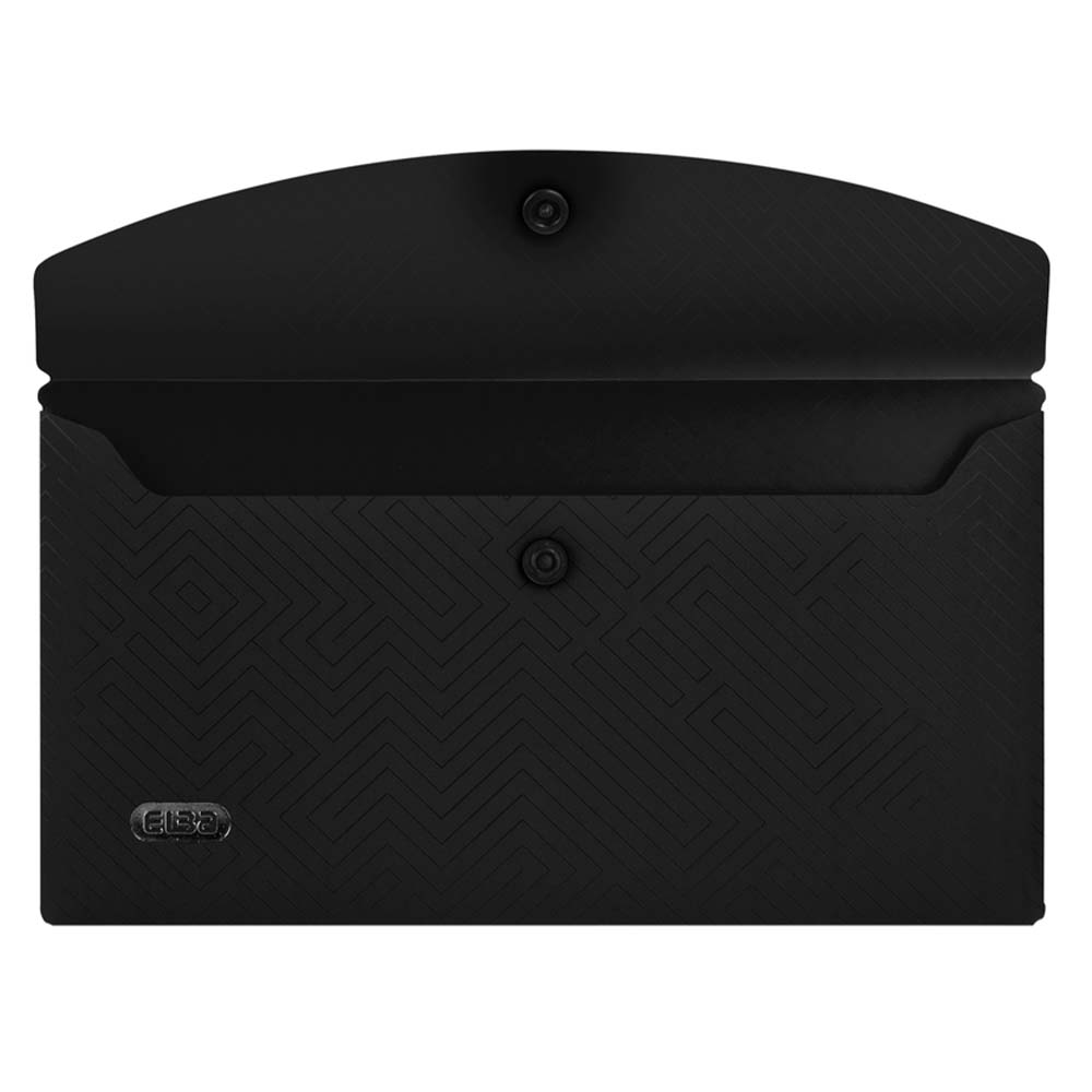 Kopertowa teczka wykonana jest z przezroczystego polipropylenu o grubości 300 mic z wzorem, który przypomina labirynt. Dokumenty są zabezpieczone przez wypadaniem zamknięciem na zatrzask. Bezpieczne użytkowanie zapewniają zaokrąglone rogi. Format DL sprawdzi się w przechowywaniu małych formatów np. biletów, rachunków.