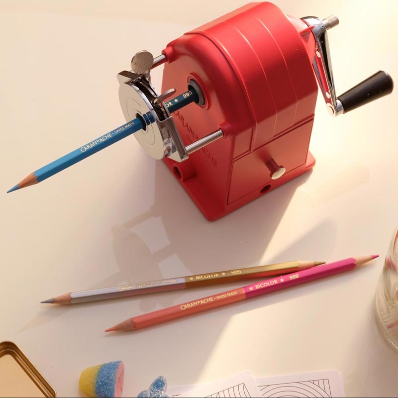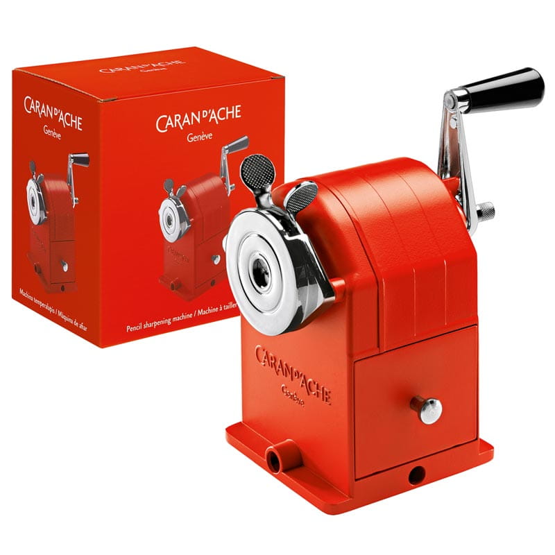 Temperówka szwajcarskiej marki Caran d’Ache. Metalowa temperówka w charakterystycznym dla marki Caran d’Ache czerwonym kolorze.