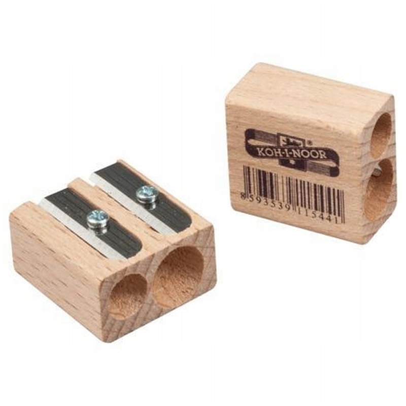Temperówka Koh-i-Noor drewniana podwójna do kredek i ołówków o średnicy 6,5-7 mm i 10 mm (jumbo). Posiada metalowe ostrza.